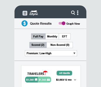 Our consumer quoting tool lets prospects request a quote directly from your agency’s website 24/7. They can even text a keyword to your agency to receive an auto quote directly on their phone (Quote By Text is an EZLynx exclusive!).